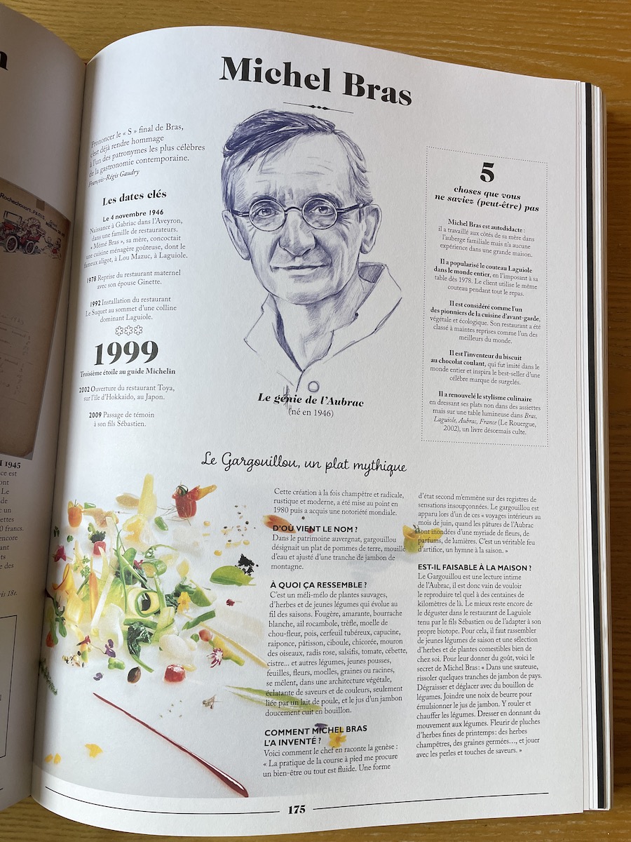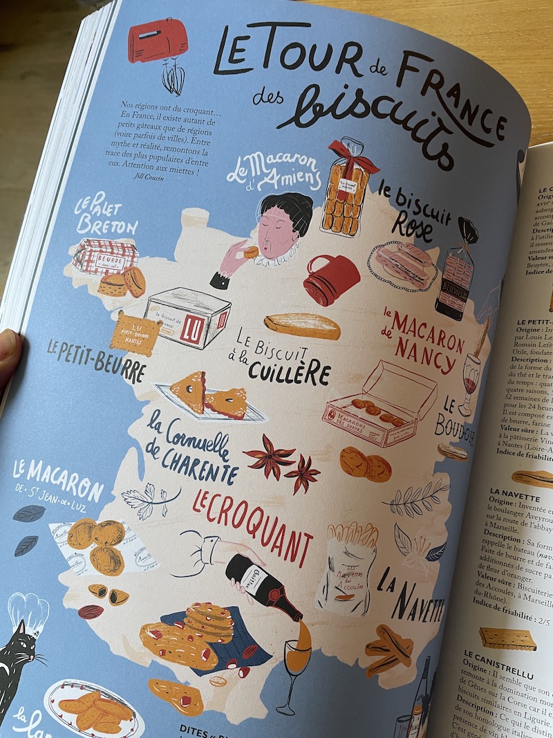 Vers van de pers: dit vuistdikke naslagwerk (bijna 3 kilo zwaar!) over de Franse keuken en streekproducten. Geen kookboek dus, maar een heerlijk bladerboek met ludiek gepresenteerde informatie in honderden illustraties, kaarten en grafieken. Zoals volle pagina’s over de verschillende uiensoorten die Frankrijk rijk is. Of àlle Franse broodsoorten, ook regionale. Pagina’s vol over beroemde recepten en volgens leuke thema’s, zoals gerechten uit bekende Franse films. Ook lees je interessante feiten over gastronomische grootheden zoals Brillat-Savarin, Colette en Paul Bocuse… Echt een schatkist van weetjes over de Franse gastronomie! Kleine noot: wij hebben (nog) alleen de Franse versie van dit boek gezien, dus we kunnen niet beoordelen hoe goed de Nederlandse vertaling is. Er staan veel jeux de mots en specifieke Franse woorden in de originele uitgave, dus we zijn benieuwd..!