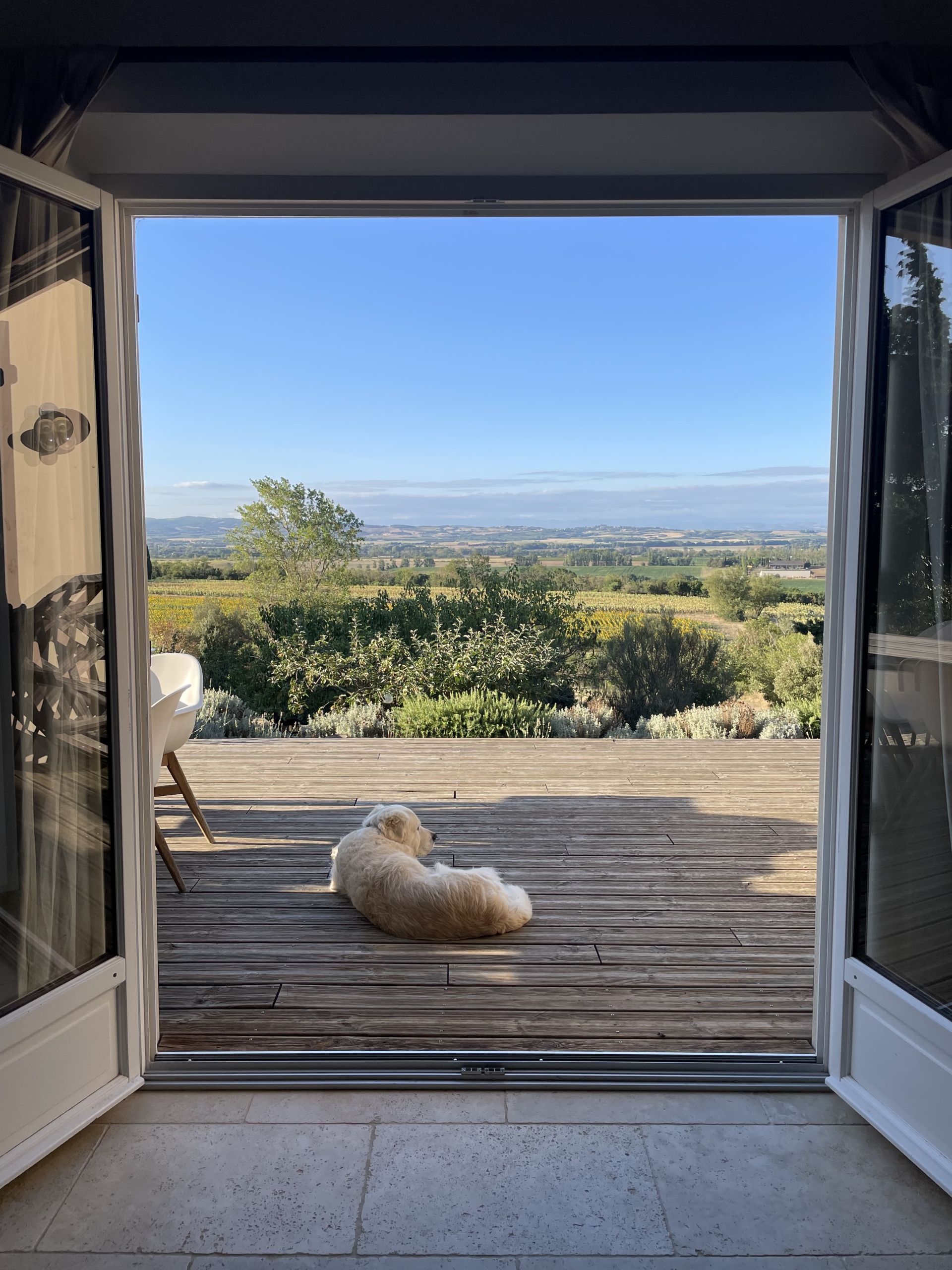 “Wow”. Dat is het eerste woord dat ons ontglipt als we bij Domaine de la Bade uit de auto stappen. Dat uitzicht! Het domein ligt op een heuvel omringd door olijfbomen en zonnebloemvelden… en in de verte zien we de toppen van de Pyreneeën. Vanuit de olijfgaard klinkt een uitbundig vogelconcert, terwijl een lichte bries over de heuvel waait. “Bijzondere locatie, hé?”, glimlachen Joep en Miranda, die hier al 15 jaar hun plek hebben gevonden.