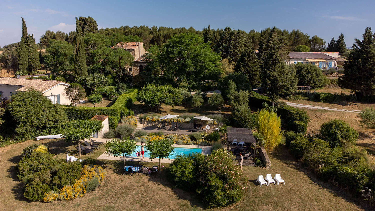 Rond een voormalige boerderij creëerde dit Nederlandse stel 6 prachtige vakantiehuizen, grotendeels in bestaande gebouwen. De gîtes hebben daardoor mooie authentieke details en ze zijn ingericht in een elegante landelijke stijl. Elk huis heeft een eigen terras in een hoekje van de mooie volwassen tuin vol lavendel en oleander. Veel privacy dus. En tegelijkertijd een gezellige sfeer rond het zwembad en de pétanquebaan, waar spontane gesprekken ontstaan met de andere gasten.