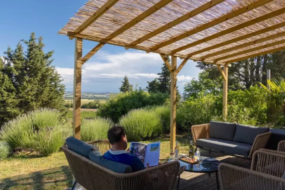 Op het domein geef je je door deze ontspannen sfeer moeiteloos over aan een niks-hoeft-vakantie. Met een boek op je eigen terras of aan het zwembad, een glas wijn binnen handbereik. En het genieten begint al bij het ontbijt. ’s Ochtends komt de bakker langs met vers stokbrood en croissants: een echt Frans begin van de dag! In de dorpen in de buurt en op de fantastische lokale markten vind je meer heerlijke Franse producten, dus ook koken in de goed uitgeruste keuken van je gîte of op de barbecue is een vakantieplezier op zich. En daarna dineren in de zwoele avondlucht, terwijl je geniet van de prachtige zonsondergangen die hier het hele landschap laten gloeien.