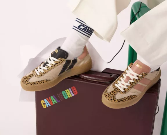 Leve de asymmetrie: bij Caval zijn de linker- en rechterschoen subtiel verschillend. Geen radicale contrasten, maar kleine variaties in strepen of kleurvlakken, wat een grappig en speels effect geeft. Deze gympen zijn een Europees product: ontworpen in Frankrijk, geproduceerd in Portugal en gemaakt van Italiaans leer. In Parijs vind je ze onder meer bij multimerkzaken als Kiliwatch en via de Caval-webshop kun je ze ook rechtstreeks bestellen (levering naar Nederland mogelijk). Meer info